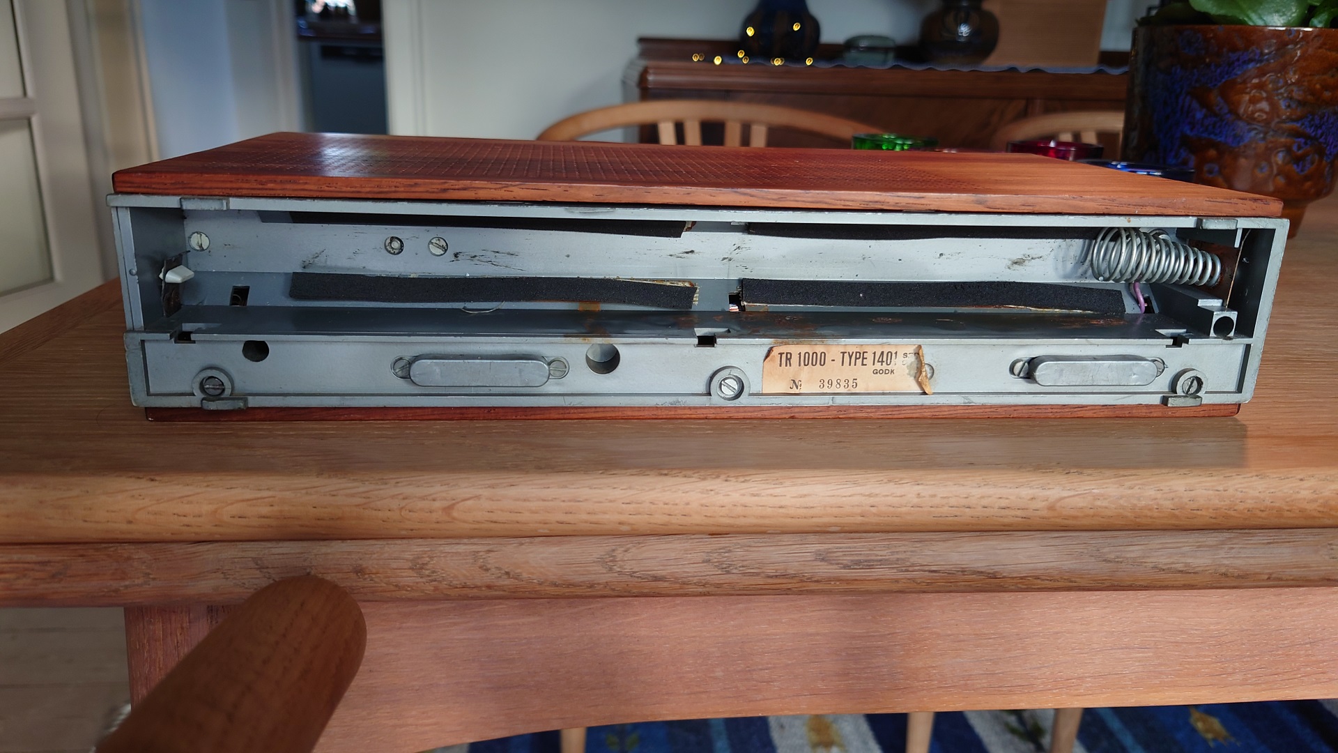 I have a Beolit 700, because it's the marking on the top plate. As simple as this. I also made some progress : Somehow, once mounted inside the cabinet, the loudspeaker is connected with blue and black wires, that the black wire should also be connected to ground, and it's not ! I tried to connect a wire between the loudspeaker lug and the ground I I do get a loud distorted sound of some FM station.So my issue is half resolved. At the very least I am confident nothing is severely broken.