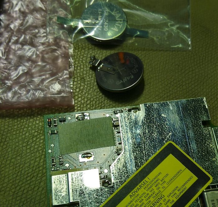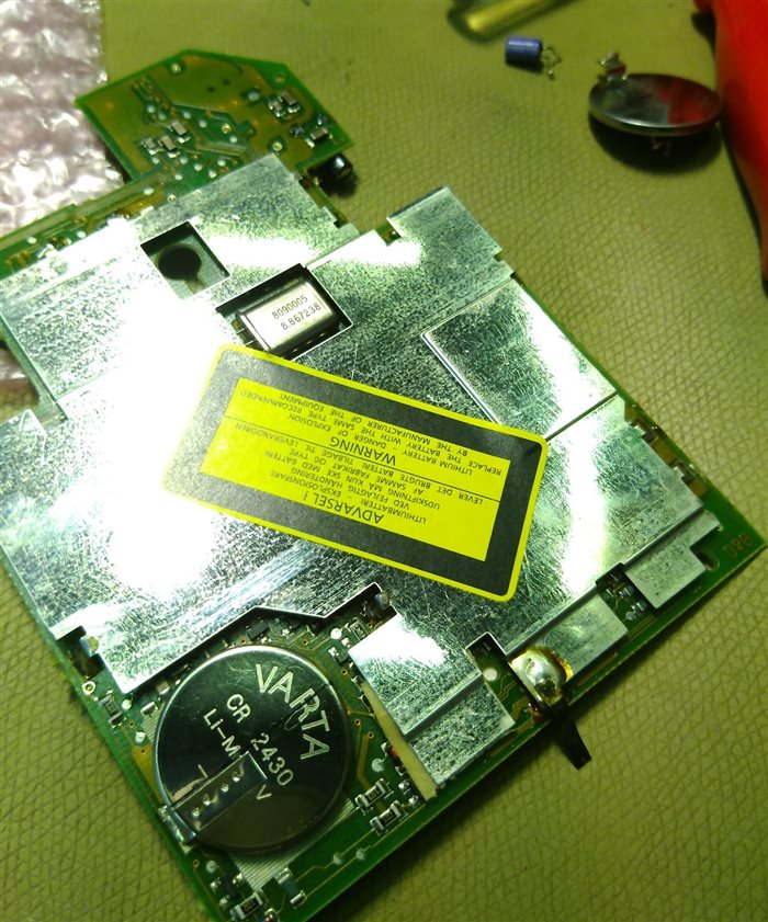 Old battery removed. It didn't actually measure too bad for being original. And most importantly no leakage and the board was very clean.