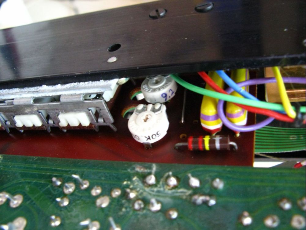 The other thing to look for in the FM section are the 2 hidden trimmers (10K 50K) behind the Tuning indicator light, soldered through 2 layers of flex PCB. Although these are much more accessible than the same trimmer in the BM4400....