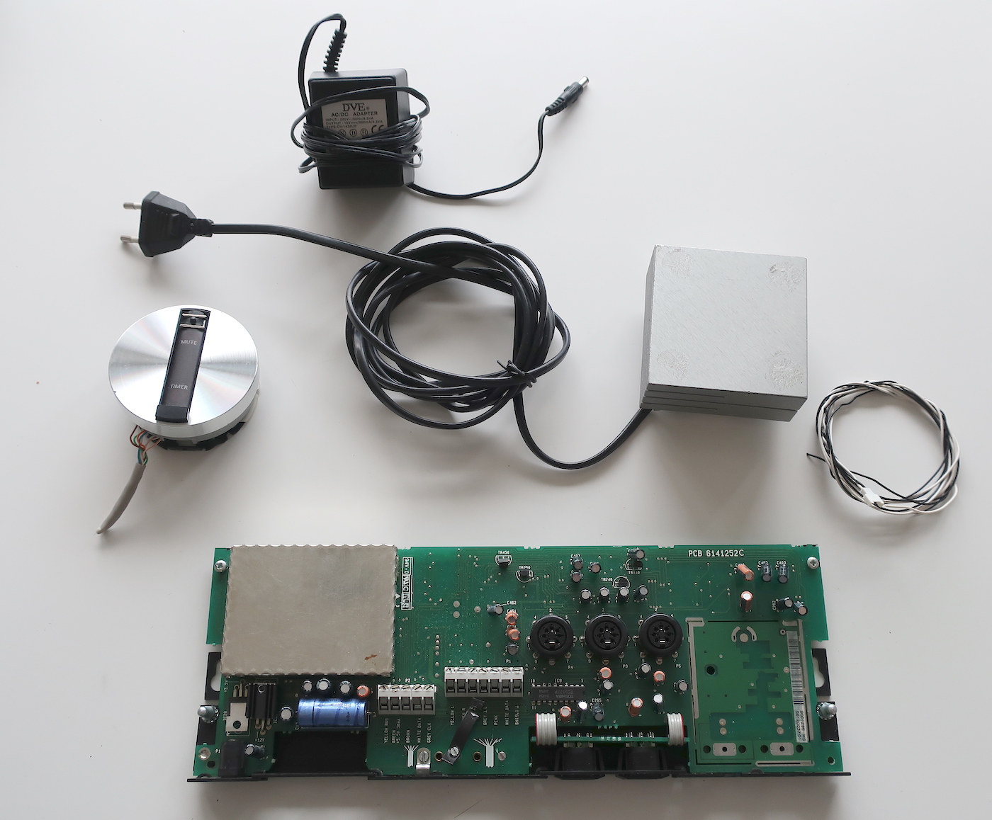 This is the original transformer for the Beolink 7000 floor stand AND the LCS7000 IR transceiver/BL7000 wall charger. Which is the round IR puck in the picture! Mounting the BL7000 on wall sounds a bit risky, though...