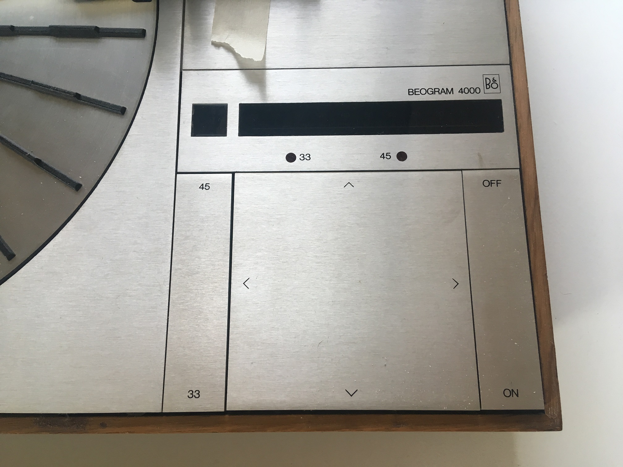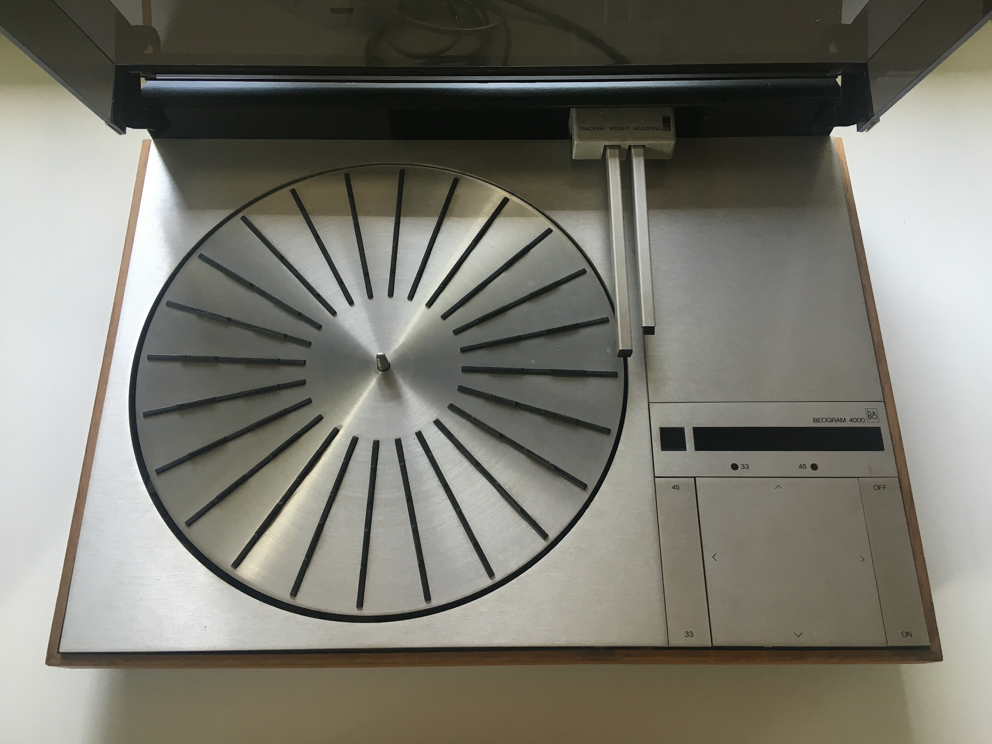 The turntable looks excellent but the dust cover appears to be a replacement from a Beogram 4002/4004 model. The original Beogram 4000 dust cover has more of a bronze tint to it. The later Beogram turntables used the smoky tint you have here. The Beogram 4000 dust cover also has printing on the left and right sides of the aluminum trim piece. That shouldn't affect the appreciation of this turntable but it is just something to note.