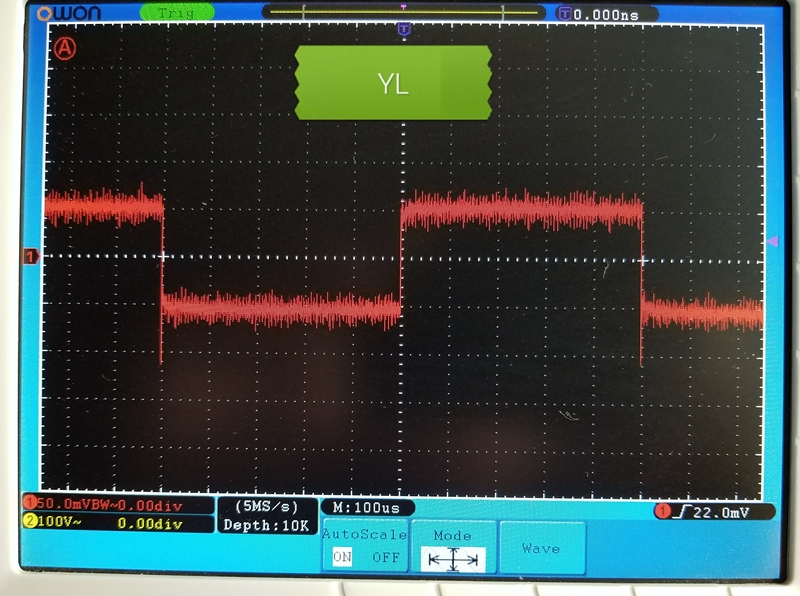 You should get the same display when you disconnect your scope probe from the beolab and just touch the tip of the probe, depends on the selected sensitivitiy on the scope ( for example 0.5V / cm ).