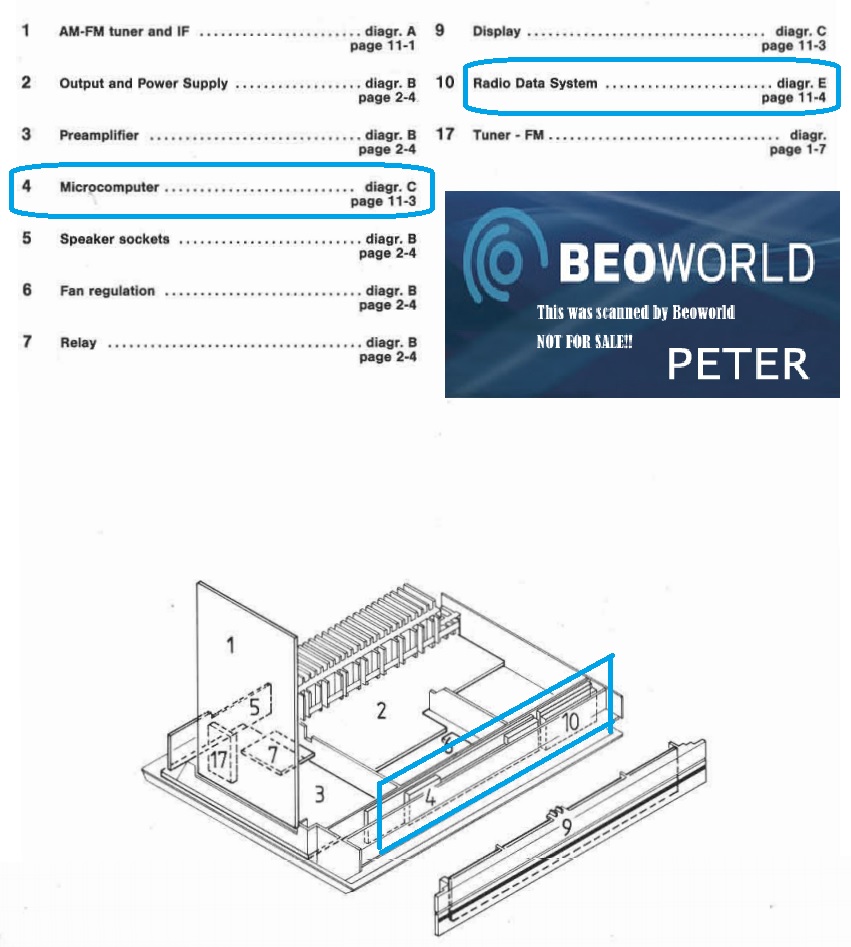 I’m looking for PCB4 (Microcomputer) and PCB10 (Radio Data System) PCBs from some Beomaster 7000 donor. Basically I would like to enable RDS in my Beomaster 6500.Those boards are installed behind front panel (shown below in diagram).