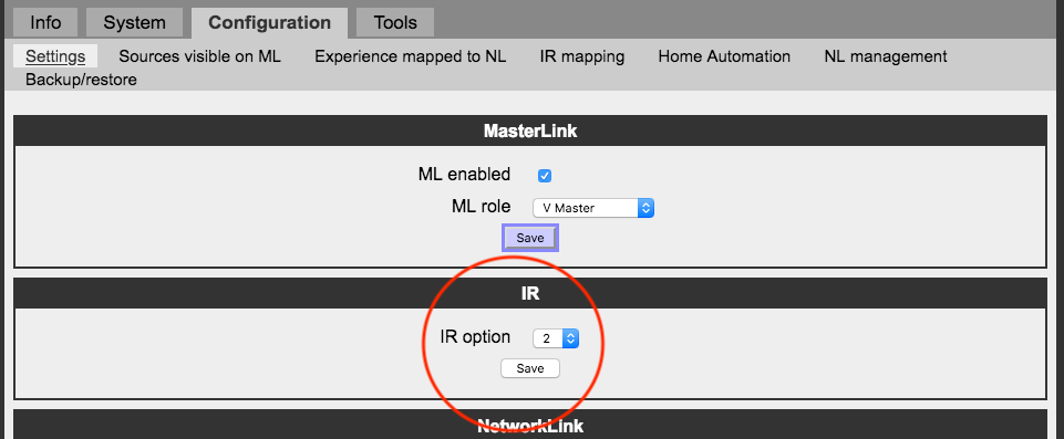In the original configuration the videomaster is a BLC NL/ML set in that role enabling my NL products