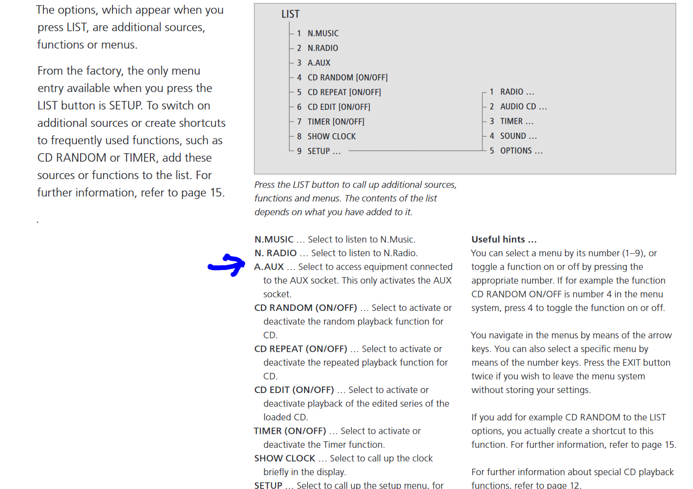 hohv:Correctly understood. Change to CD or VTape also works, but not to a.aux.