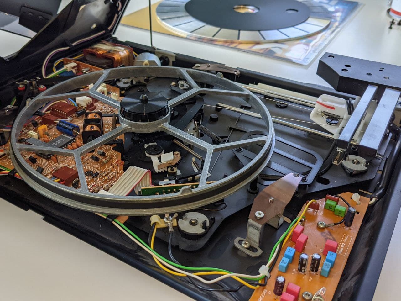 About belts loosing it's elastic, this is how the belt from the Beogram CD 6500 looked liked; clearly replacement time and it did sometimes have problem to eject the CD: