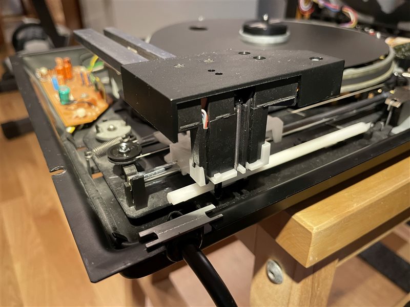 Busy thread! Managed to post a respond without seeing yours Martin. But, I've played a 180g record which plays fine now and any other record again. Main reason why this probably happened was most likely due to that I removed the PCB2 card to re-cap it and re-mounting have of course put the mechanism so it wasn't centered any more. All in all I've re-cap all electrolytes, new diodes and tweaked the RIAA (thanks for help and input from Menahem) including new plater belts and pick drive belt from Martin.