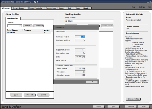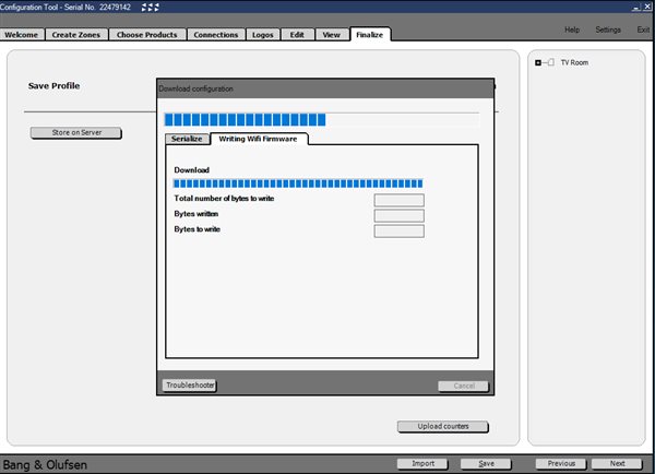 Also, the Beo5 initially connects fine to the Configuration tool, but seems to lose connection during configuration download. I suppose it could be a battery problem but the remote seemed to have quite good battery performance earlier, and I have tried update just after disconnection from a long period of mains charging.
