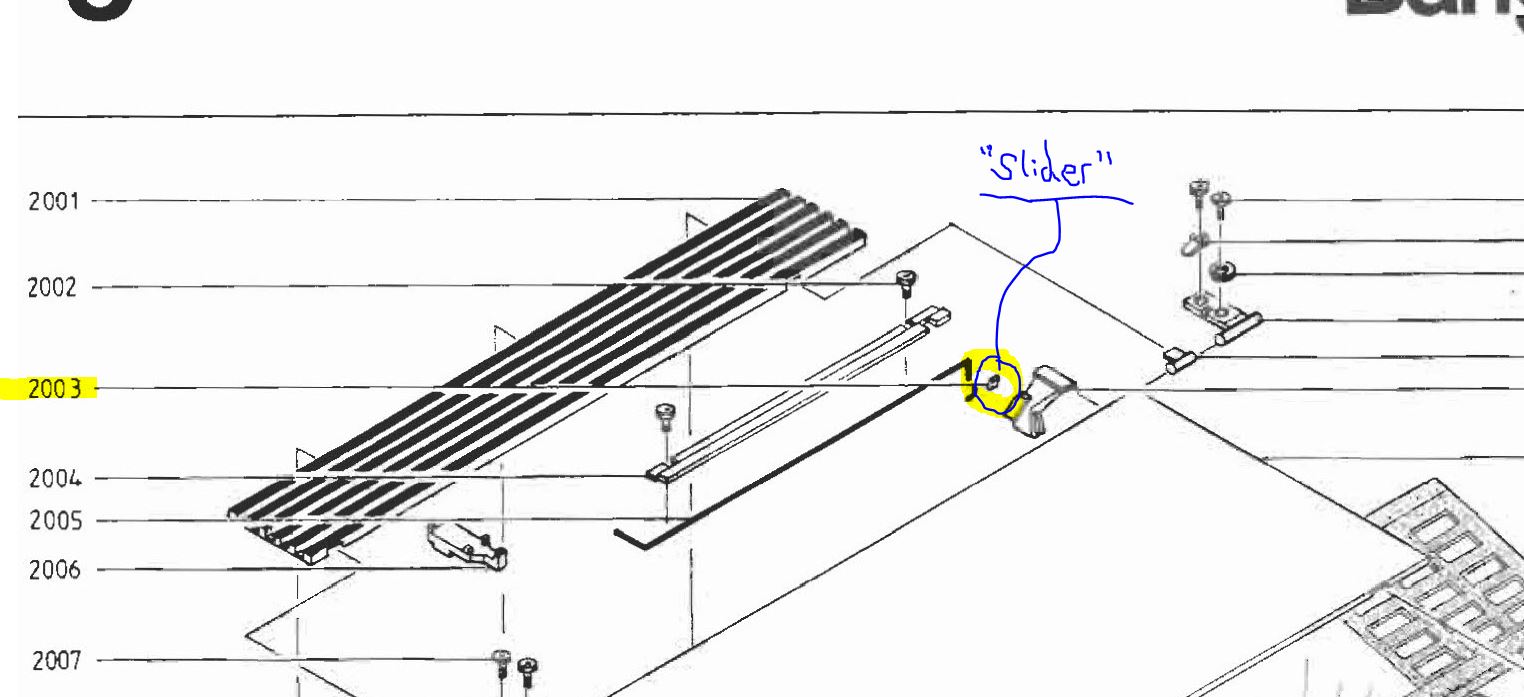 It's really hard to figure out how the lid mechanism works from the service manual, but it seems that the "slider" is important, probably essential. I've looked all over the internet for one for sale, but I cannot locate one. Is there a substitute that can be used instead? Has anyone found an alternative method?