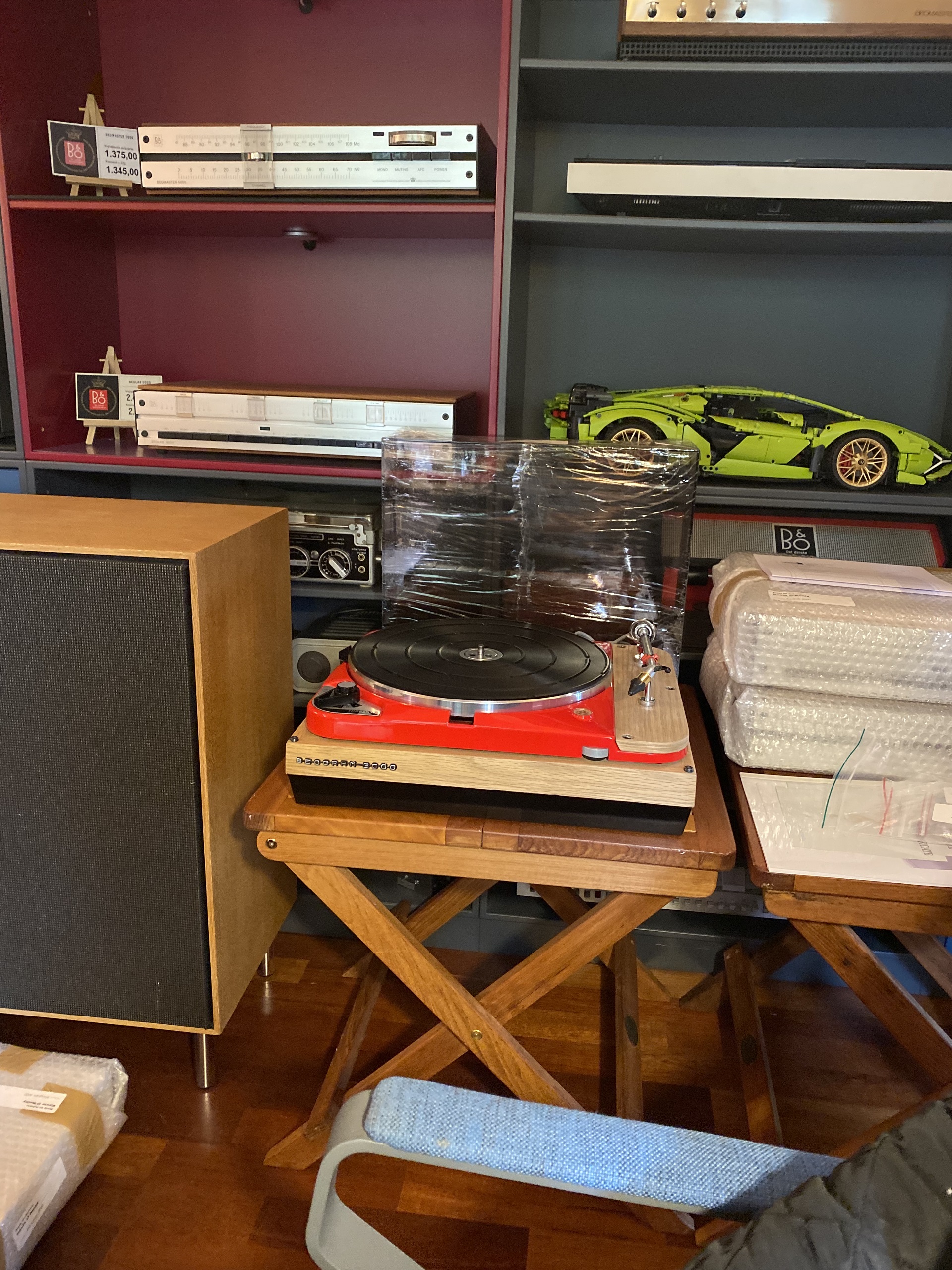 On Thursday, I visited Frede Kristensen in Veno to pick up a Thorens TD124 mk2 rebuild in all Oak and Ferrari red. I also got a Beogram 4000 and his famed Beolab5000. Frede is a lovely man and we had a pleasant hour discussing the equipment. His workshop is an Aladdin's cave and his technology very much cutting edge.