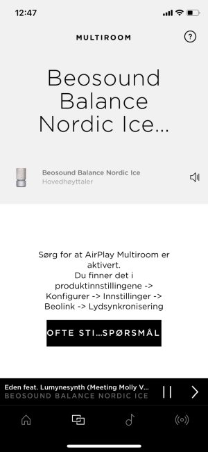 Csaba: Although this bit is a little confusing when I start with AirPlay, then I use what I think is BeoLink Multiroom in the B&O app, but I also get a warning about having to enable AirPlay Multiroom. Which I can do for the Beosound 1, following the "backend" configuration pages, but I do not have anything similar for the Balance (ref. screenshot in a previous post of mine), even if the app insists I should go to something like Product settings > Configure > Settings > and activate AirPlay multiroom (for the Balance).