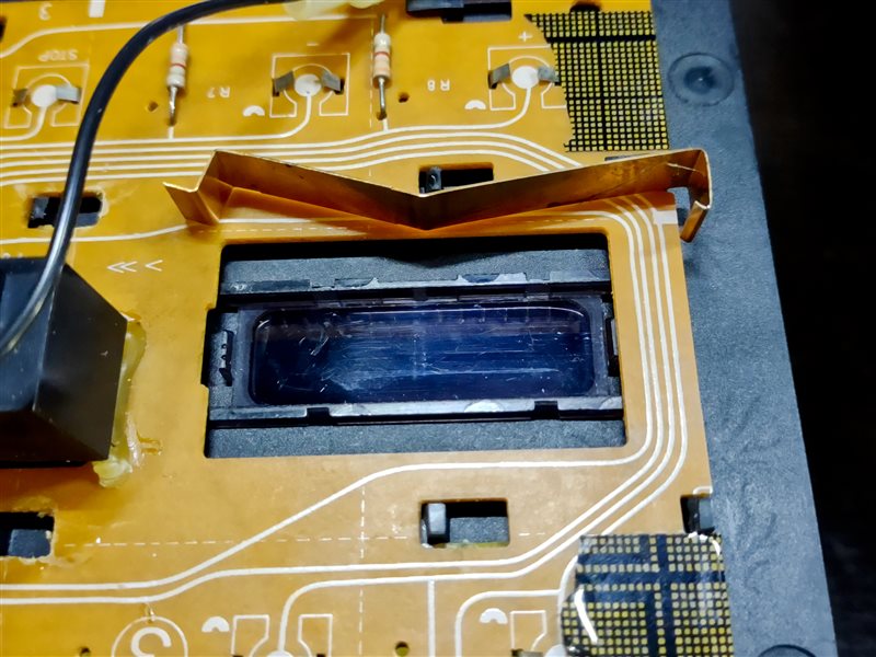 Hi,It is a spring clip that is for securing the Beogram 8002 LED display to the control panel and can be a little tricky to get back in place.The small LED display fits into the control panel opening behind the red, plastic lens. The metal clip you are referring to has a flat, metal tab on one end and a curled edge on the other.The tab fits under the control panel board so that the center of the clip (the "v") presses down onto the back of the LED display. The curled end grabs the edge of the control panel board to keep the clip from coming off...and pressure on the LED display.