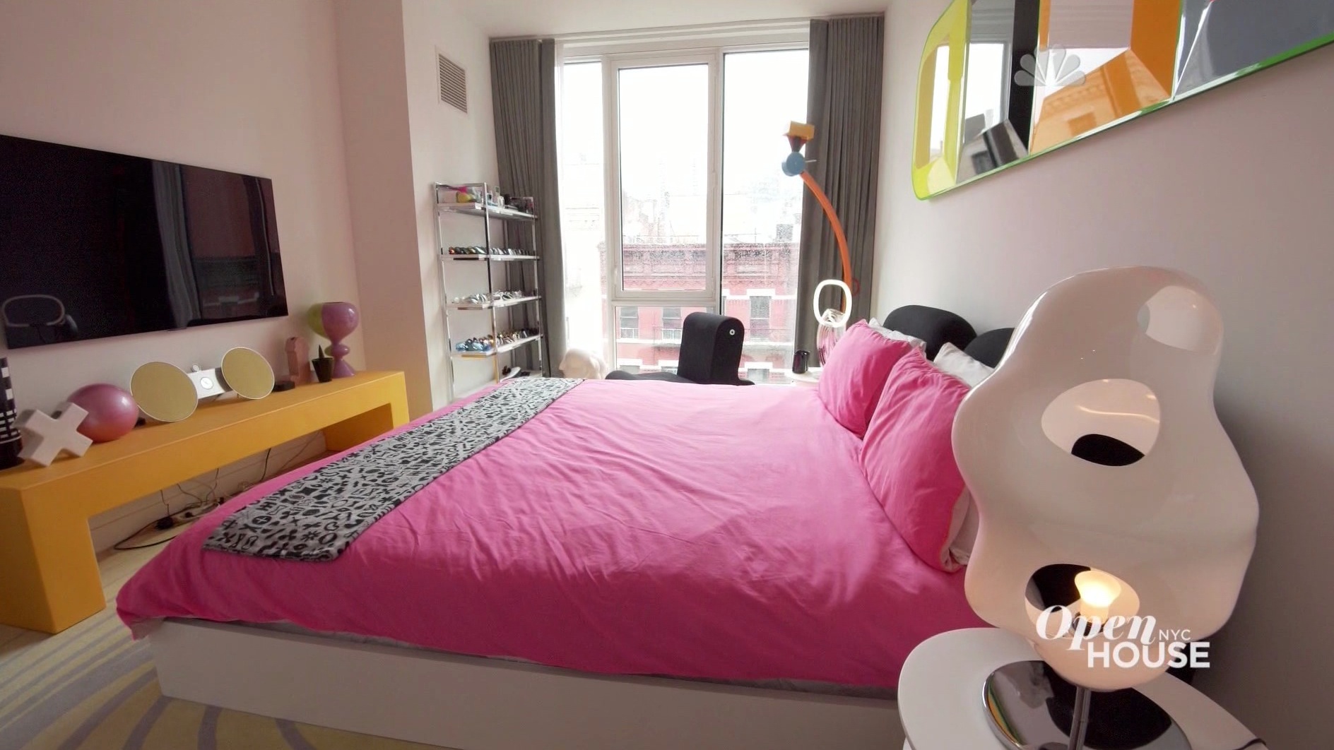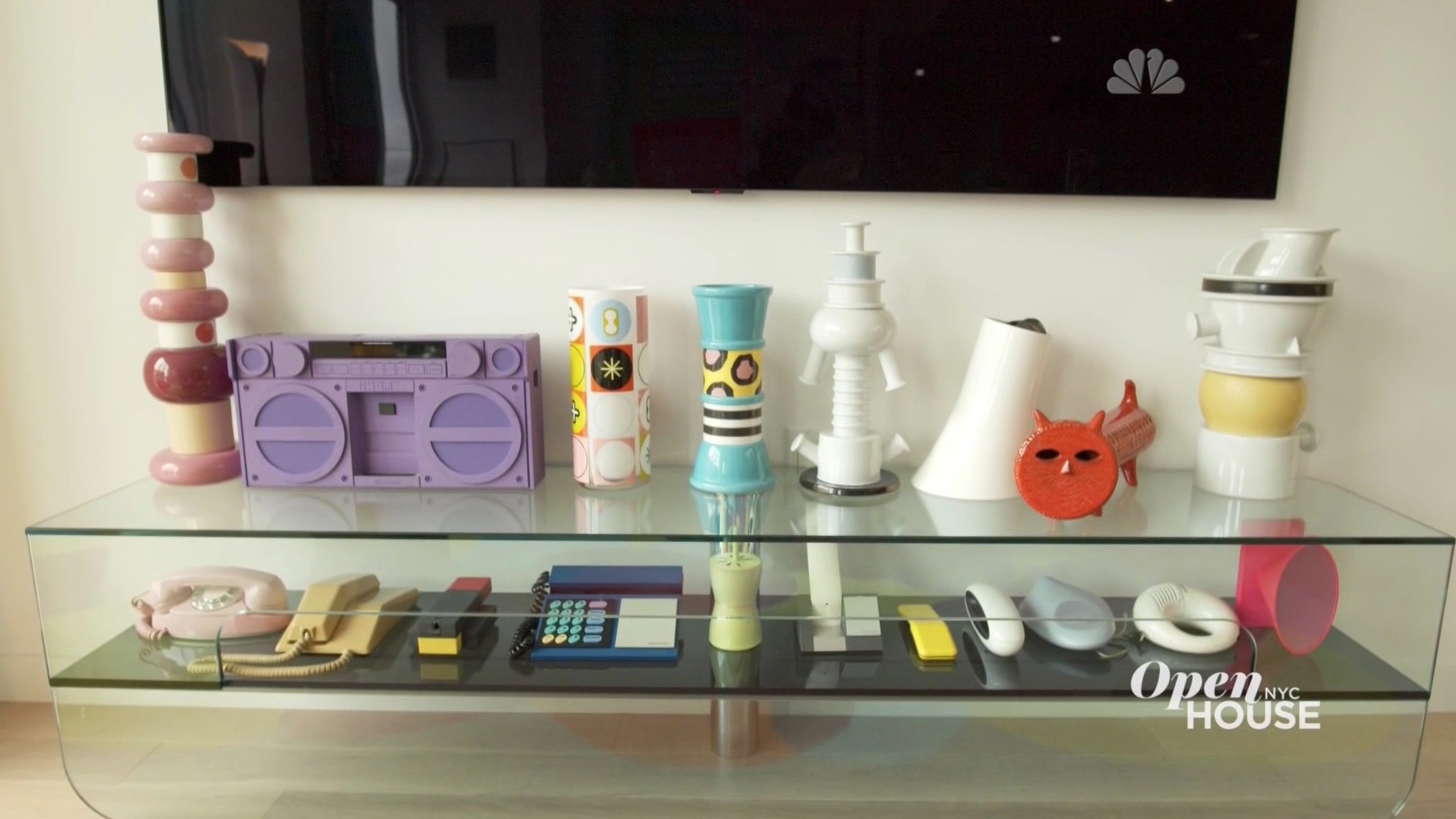 Designer Karim Rashid's apartment was on TV 3/21/2021 "Open House NYC": Beoplay A8 in the bedroom and Beocom phones in the collection in the living room. Alas you can see he also has an iHome iP4, and (not shown here) a Harman-Kardon Go+Play portable speaker.