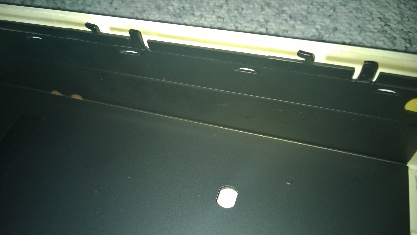 The ribbon cables from the rear of the top circuit board to the power supply can also catch on the underside of