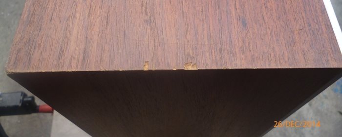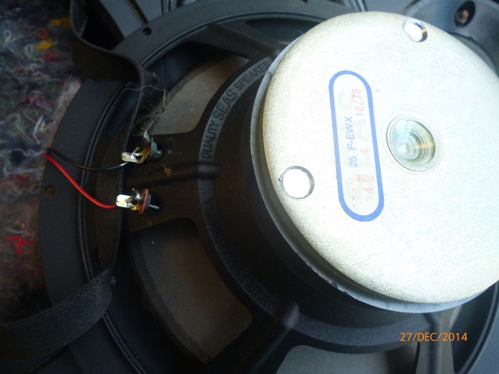 While waiting for glu, paint and oil to dry, I opened speaker 2, the cabinet look OK, some scratches but nothing serious. Crossover exactly the same as in speaker 1, Took out all the drivers, the solder taps for the woofer was loose from the basket.