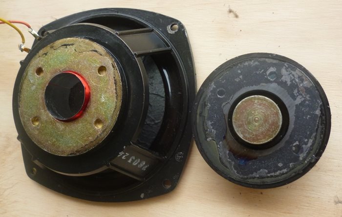 Measured the coils on all drivers, all around 3.7 Ohms, except for the tweeter that one is open circuit, here the empty cabinet