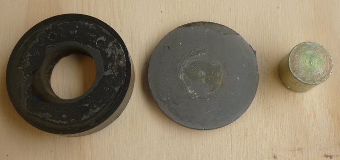 The back plate with the center shaft came lose with a hit on the center shaft from a wooden hammer shaft.