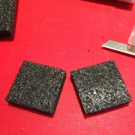I used a decommissioned pantyhose. Cut a small square, wraps it around starting with the corners. stick it to the double sided adhesive.