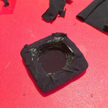 Then use some contact cement to fasten the foam/cloth assembly to the Form 1. The foam I found at the FLESS was thick enough that I thought the upper pad could be omitted for the repair.