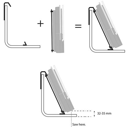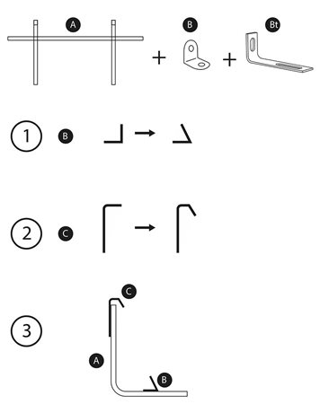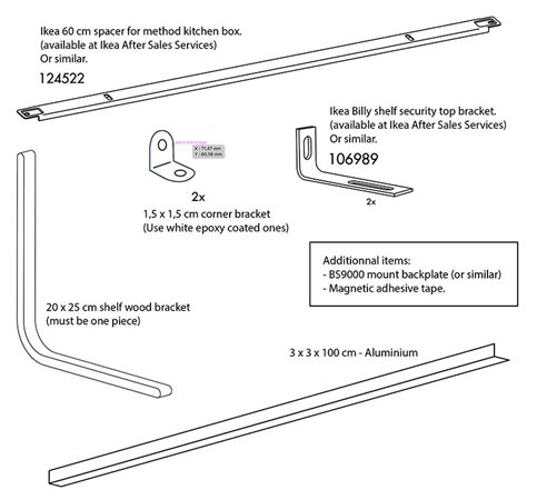 - The top Ikea brackets are perfect because they have a long hole on the long leg which allows to move the piece up and down to clamp/unclamp the baseplate.