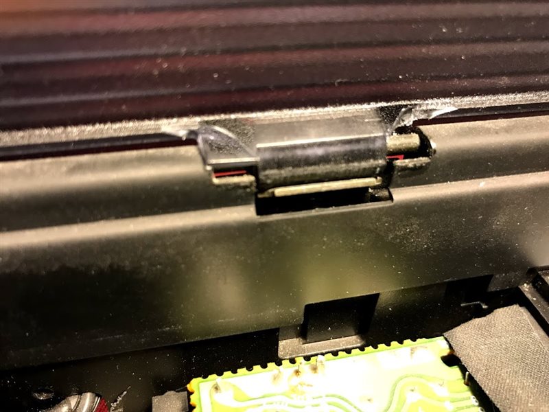 To make matters worse, when I start to close the lid, I hear the snapping of plastic as part of the hinge cracks off. You can see in the below photo how the right part of this hinge is cracked off and the left side is sitting on top of the metal portion of the hinge - I'm guessing it should be underneath instead?