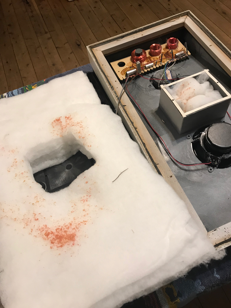 3. The previous owner said he had replaced the sound deadening material inside the box as the previous stuff was crumbling. Does the stuff he used look OK for the purpose? I noticed it was in the compartment that houses the mid on one speaker but not the other. Worth adding it to the second?