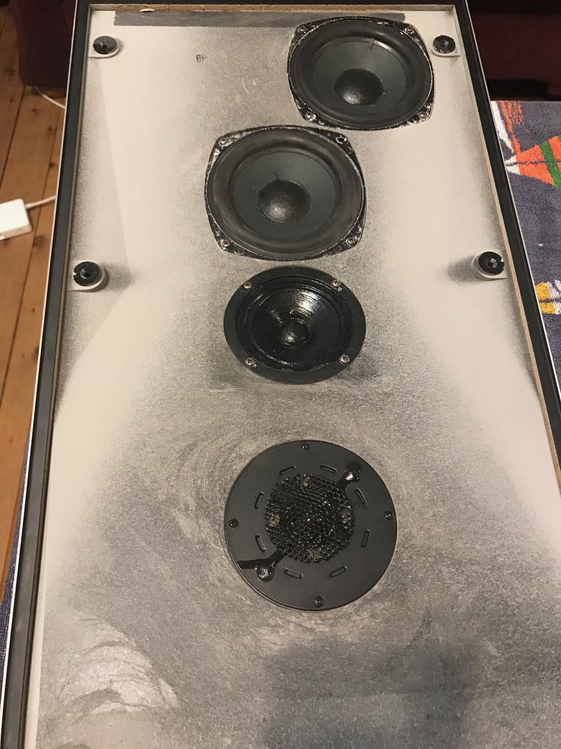 1. Since getting them home I’ve read quite a bit about the bass driver magnets coming loose and freezing the driver. As far as I can tell there is no sign of this at all. The obvious sign of this would be the cones not vibrating and not emitting sound? The magnets don’t seem to have had extra glue added, so it seems surprising to me that they are going so well after all this time. Is it just me or do these drivers look a bit different from others I’ve seen in photos? I’m a little concerned that the drivers may have been replaced with inferior ones.
