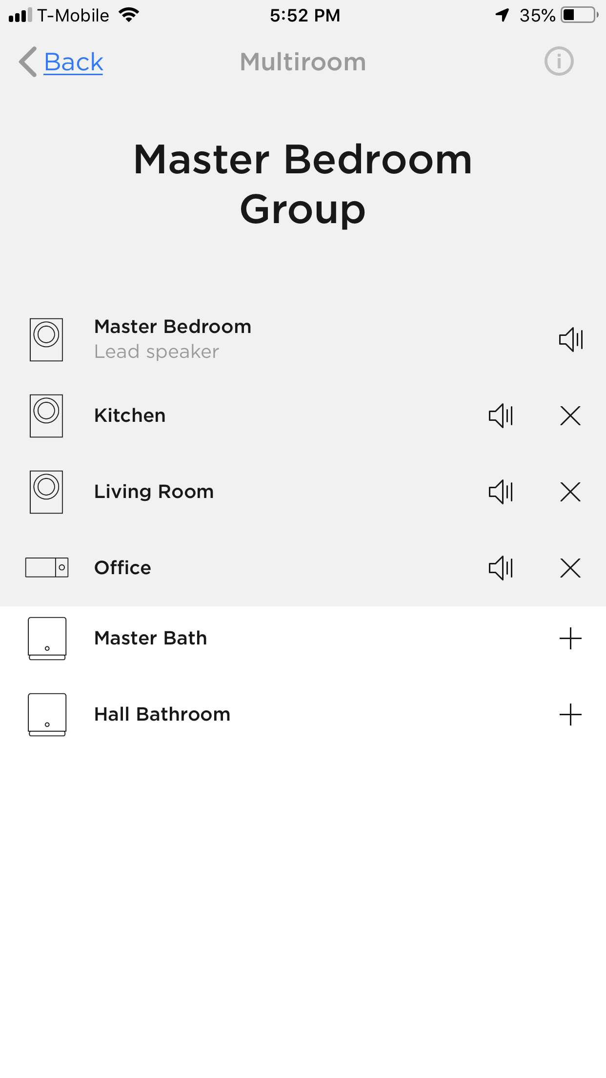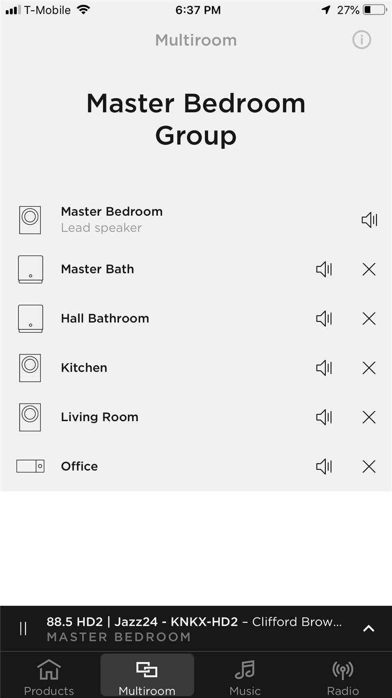 laseralex:This single screen:Allows me to see what individual device I'm changing volume onAdds a whole-group volume control at the topAdds station (or track) forward and back buttons to the station/track block above bottom row buttonsProvides more space for station or track information in the station/track blockStill allows me to add or remove Multiroom products (by tapping the name or preferably by dragging items in and out of the gray area)