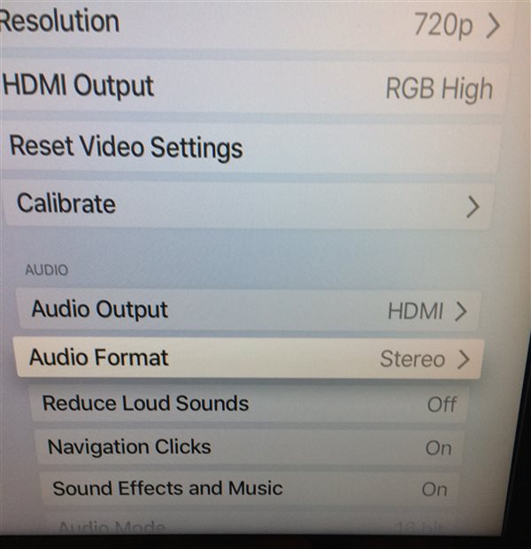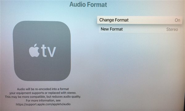 Here's the settings of my ATV4 (running IOS 12) using the audio extractor that I mentioned earlier:
