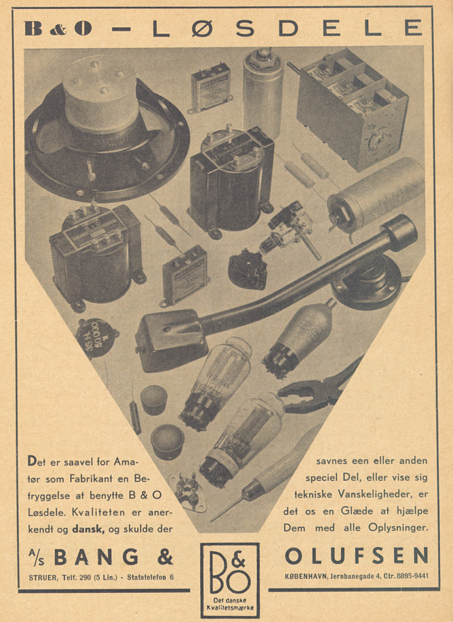 It is for the amateur as well as for the producer safe to use B&O discrete parts.The quality is recognized and danish and should some special part be missingor show technical difficulties, it will be a pleasure for us to help you with all information.Bang & Olufsen A/STelephone : Struer 290 (5 lines)