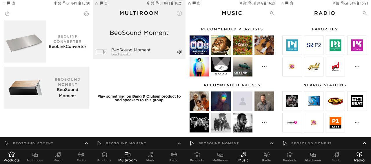 As mbolo01 indicates that my above screen shoots was primary to show case the app for you but it's populated with Deezer content. Firstly, do ensure that you add the the Moment as product to the B&O app so you can control it in a far better way; just ensure that the phone and Moment are using the same WiFi network (meaning the same SSID). Once that done you then have to provide your credentials to TuneIn, Deezer and add the DLNA-source.