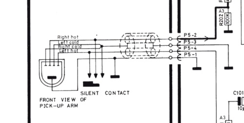 The "Silent contact" is the muting switch.It shorts the two hots to the cold(s) (the three arrows together) when the tonearm is not lowered.