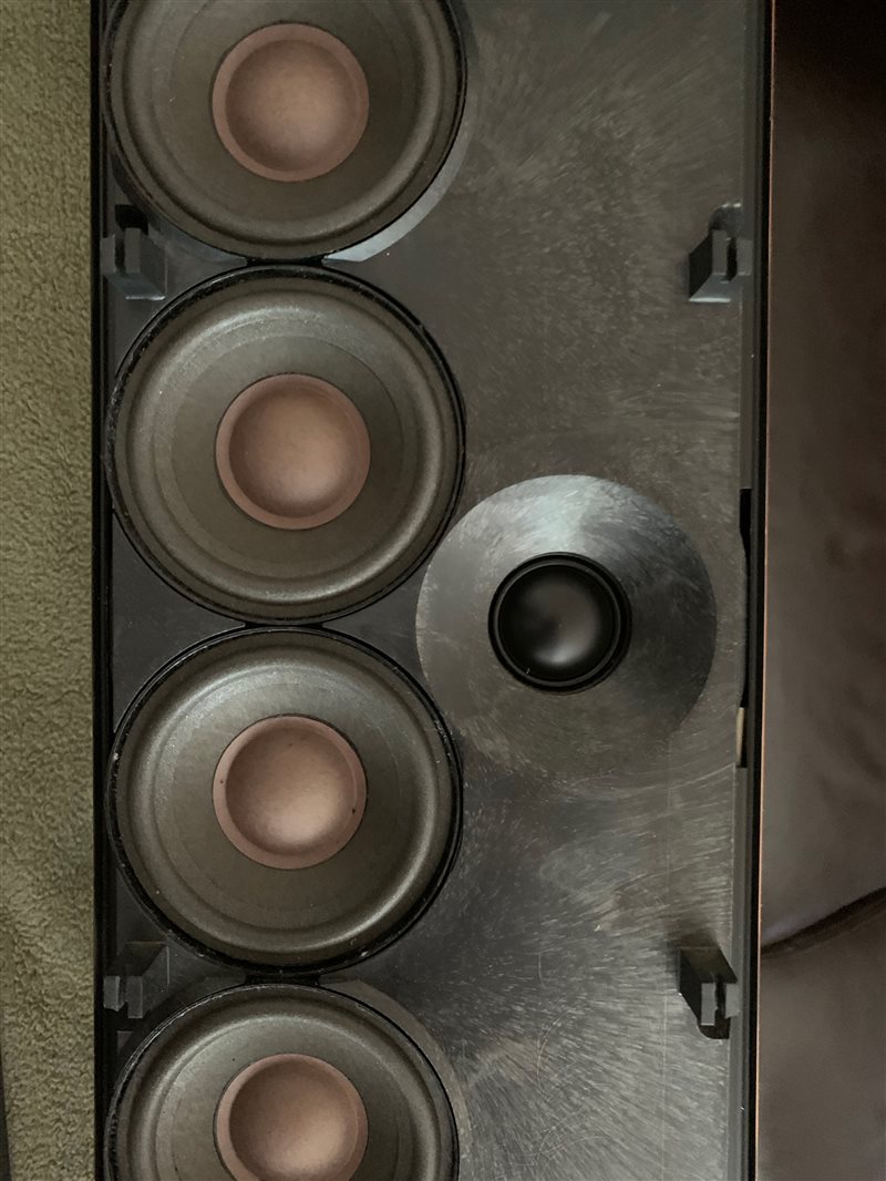 a group of four 5-inch drivers (pairing identical woofers is something that many speaker designers warn against doing, but something