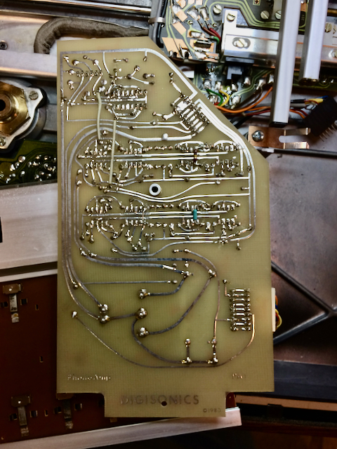 Interesting. So if the turntable was connected to the MacIntosh Phono input that preamp would be handling the RIAA part of the signal processing.That replacement board houses the big filter capacitors for the turntable power so that is interesting. The rest of it I can't tell. The original BG4004 had the phono signal muting relay and associated connectors (which yours also has). The other part of the original board was a circuit for remote control functionality with the Beomaster 2400.