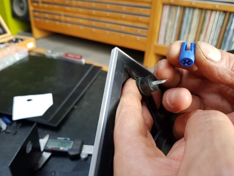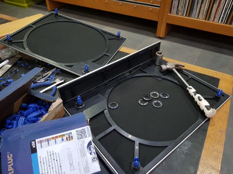 Rawl Plugs snipped off to the same length as the original lugs, the fabric frames now fit onto the speakers, the frames now feel as they should, just enough pressure when going on to hold firm, but not too much so they can be removed relatively easily.