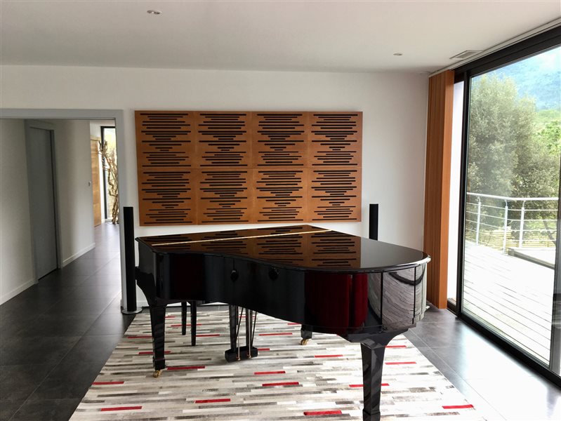 As you can observe, the room is REALLY BAD regarding acoustic with these 2x 8 meters of windows on each side, quite large with almost 90m2, with a lot of empty, plate and reflective surfaces from the floor to the ceiling