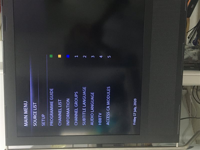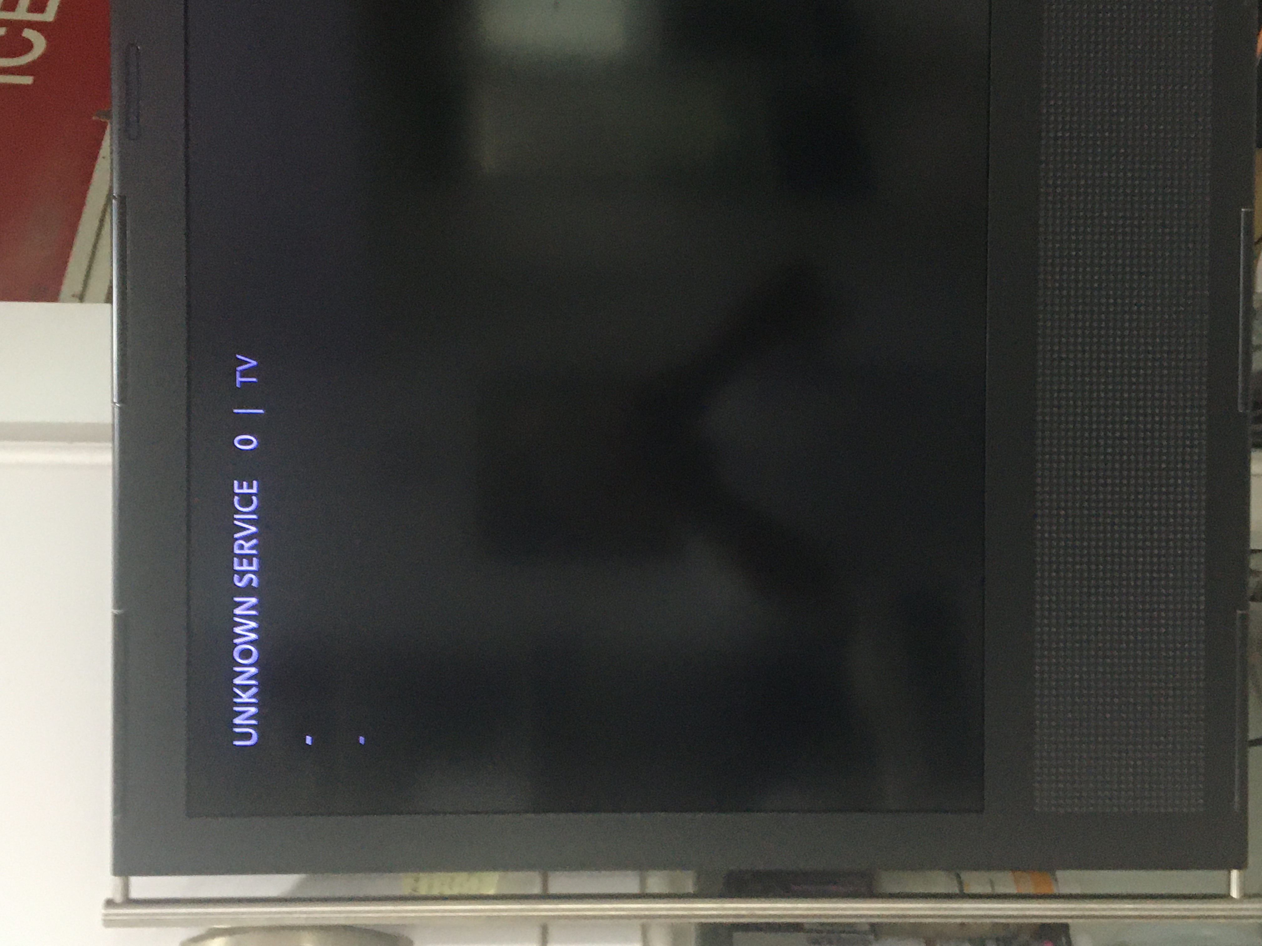 Thanks MM, most all TV's here are freeview, I don't know of anyone who uses a card with a module. When i push TV on the remote I get the message in the above photo,(Unkown service etc.) for about 5 seconds then the screen goes black. Nothing changed on the TV screen  when I used the app to navigate the menus which appeared on the TV screen. I will check a few more things in the morning as it is late here, 1.12 am and I need to sleep. Thanks for your input, I'll post again if anything changes. Chris.