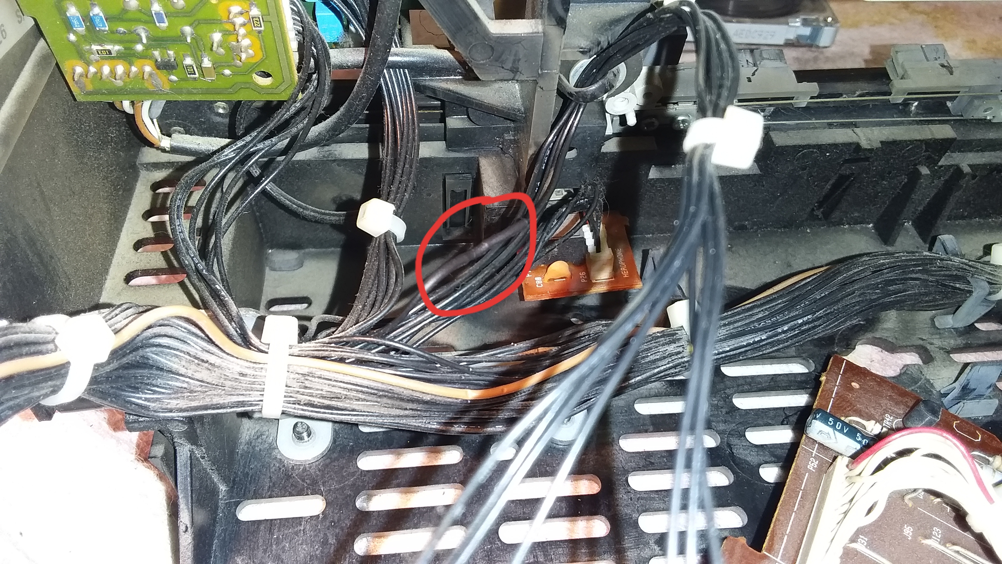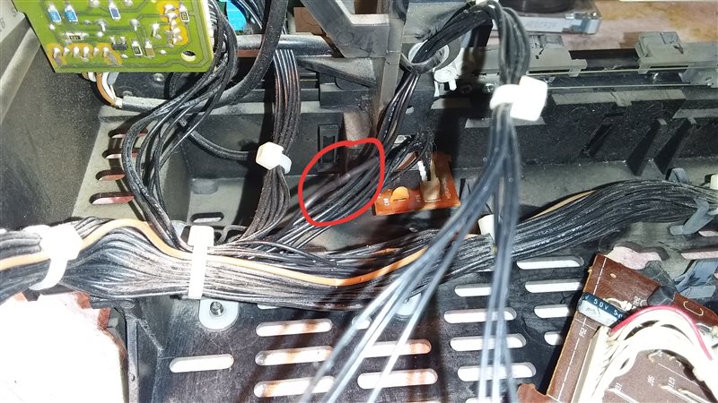 Die kleine Platine (PCB94) auf dem Laufwerk wurde nicht getauscht, sondern nur zum Riemenwechsel abgenommen.