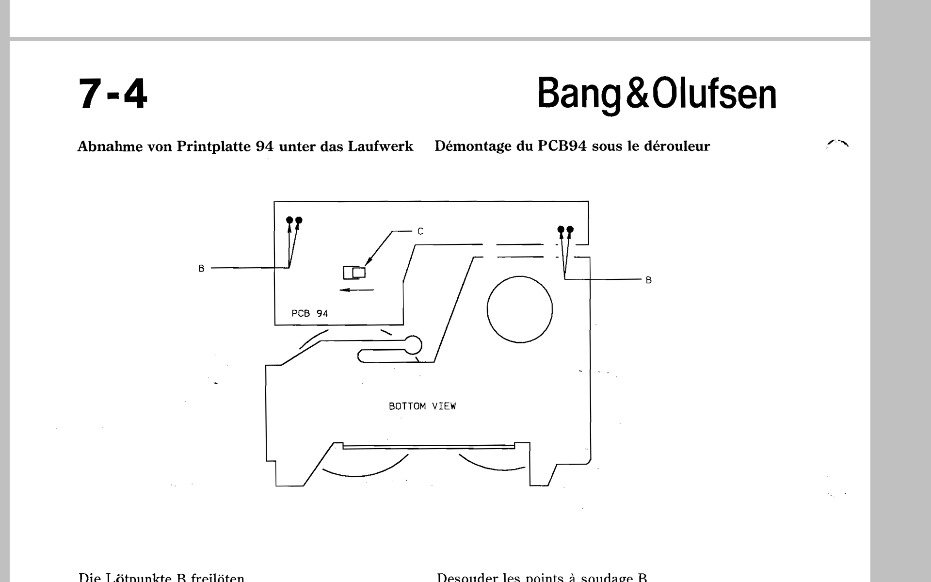 Getauscht wurde die (PCB 7) und ein gleiches Laufwerk aus einer "Beosystem 2500" zusammen mit der dazu gehörigen Steuerung (PCB 7)