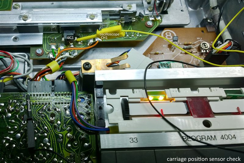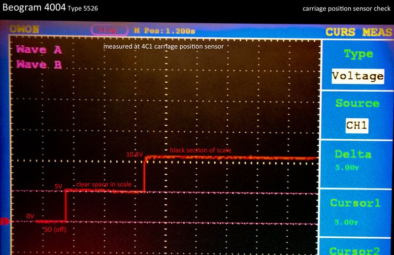 Another thing to check is the voltage coming out of the sensor and what shows up on the base of 1TR17 when the position scale is on the clear part of the scale and when it is blocked by a black position mark.