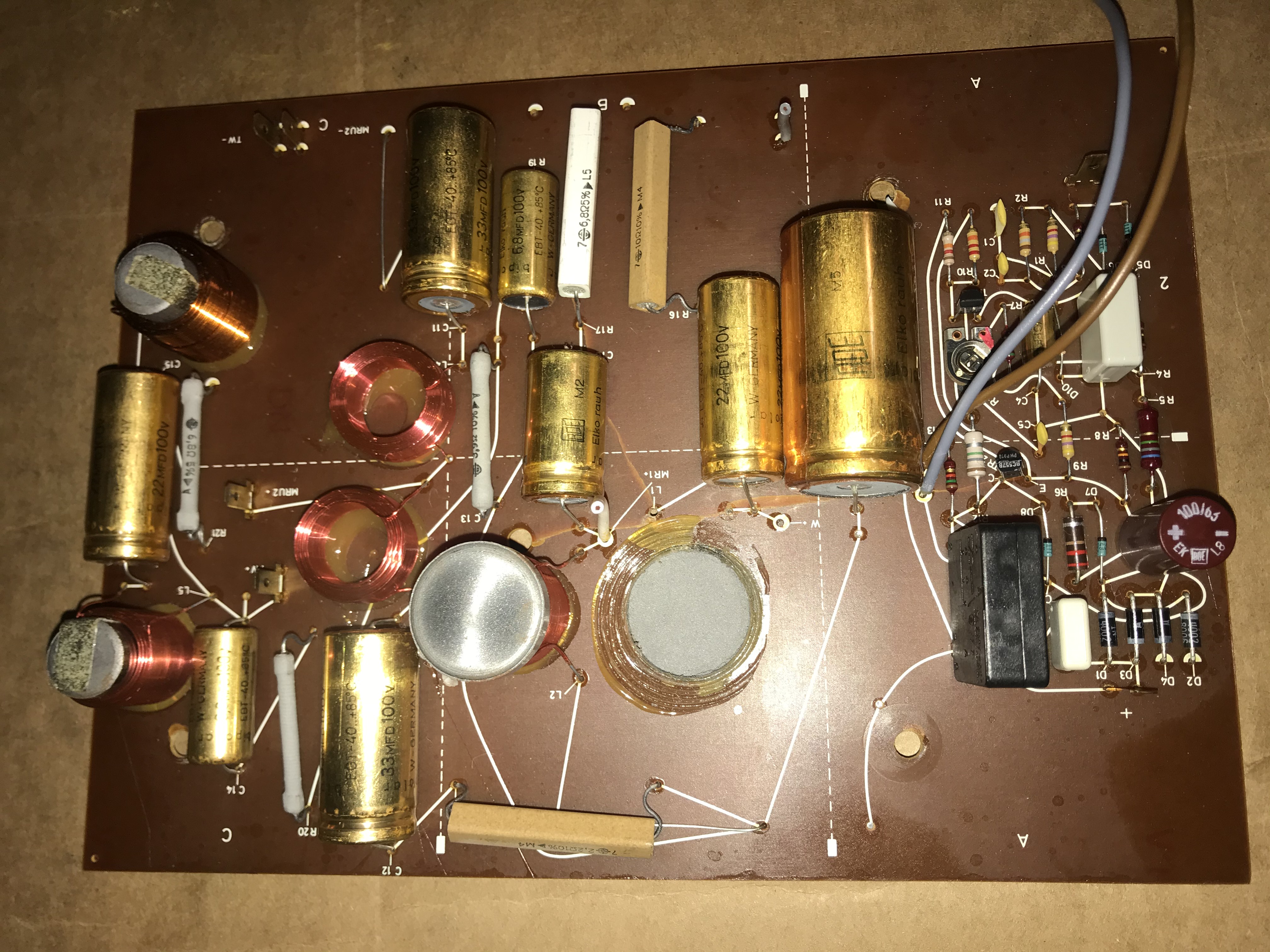 The round trip from UPS after insurance inspection has done some more damage to the crossover PCB. 1 trace was broken rest everything seems to be ok. Am worried about the weight of the 6.8mH  on the board will cause more damage. Will need to figure out a way to secure the pcb.