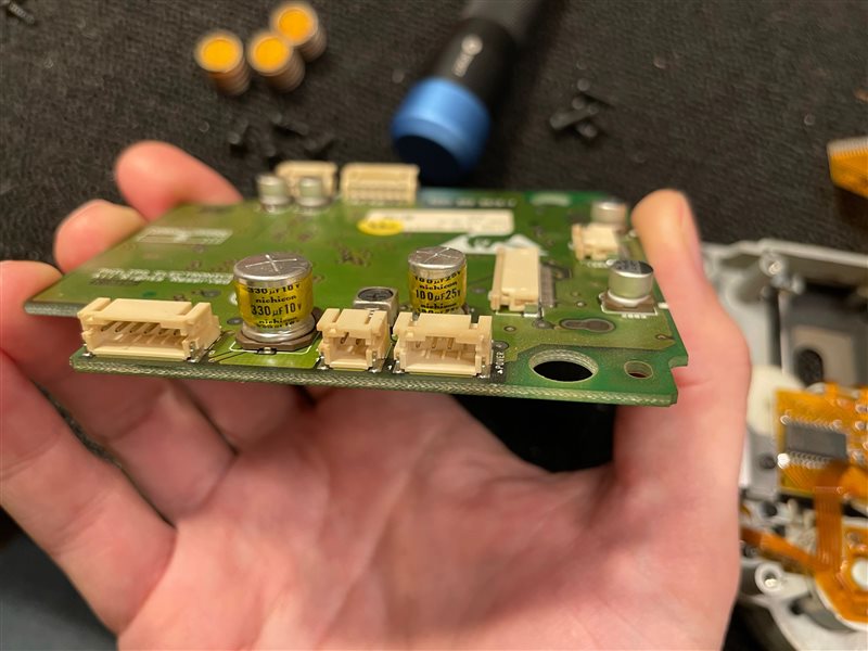 Hmm, do you have any specific reason for changing the caps or is it just a "let's see what happens" approach? Recapping is not really a magic cure, you know? CDM12 uses a different design than the CDM4, which was used in the early models of Ouverture. All the caps you see in your picture are just smoothing caps for the supply lines and I kind of doubt that they're failing. The known capacitor problem in the CDM2 and 4 servos were different. It was a capacitor in the laser current control circuit, but you don't have that in the CDM12 at all.