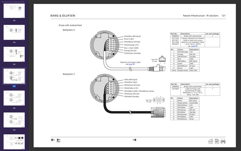 Hello Kai, is the info on page 121 of the BeoLink handbook the info that you need?
